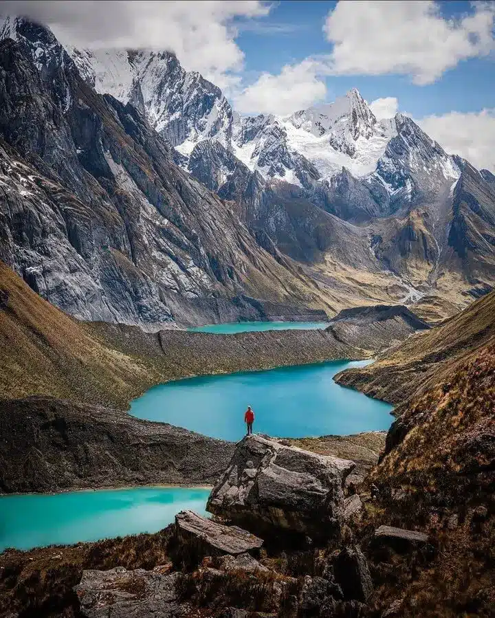 11:30 am. Inicio del trekking, con dirección al paso Cacanánpunta a (4,700 m.s.n.m.) donde es posible avistar a los cóndores. Desde aquí podemos observar los paisajes de la cordillera Huayhuash entre Áncash y Huánuco. Luego, descenderemos por el valle de Jancapampa, desde donde se puede observar los nevados Jirishanca y Ninashanca donde instalaremos nuestro campamento.
